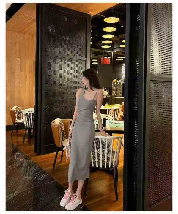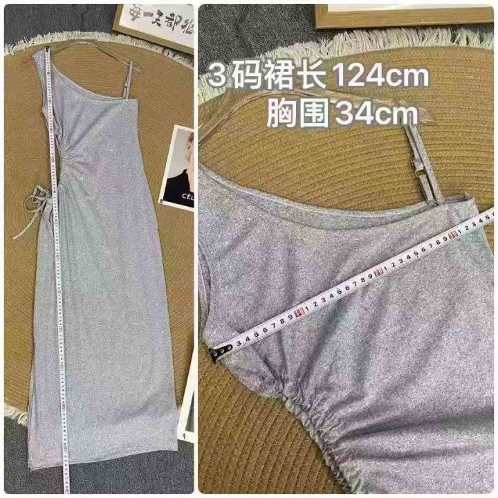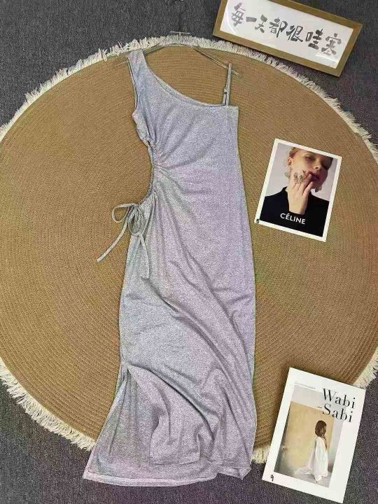 斜肩吊带连衣裙81件6.5,抽褶露腰,下摆开叉设计,肩...