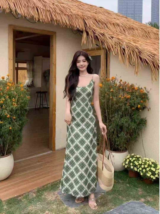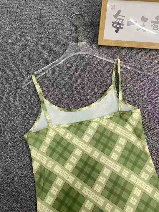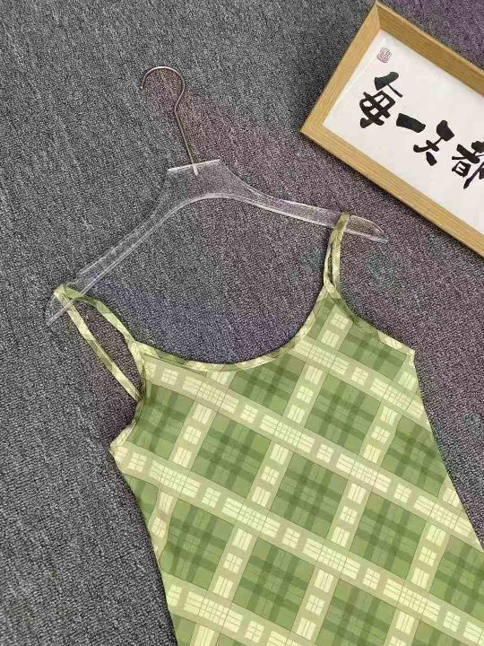 法式复古吊带连衣裙105件8.9,绿色格纹,码数1-4码(S...