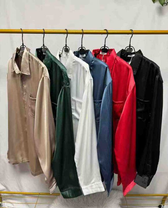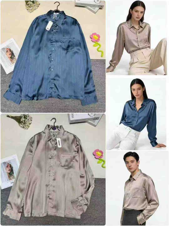 外贸男女条纹仿真丝缎面长袖职业气质衬衣,整款多色,...
