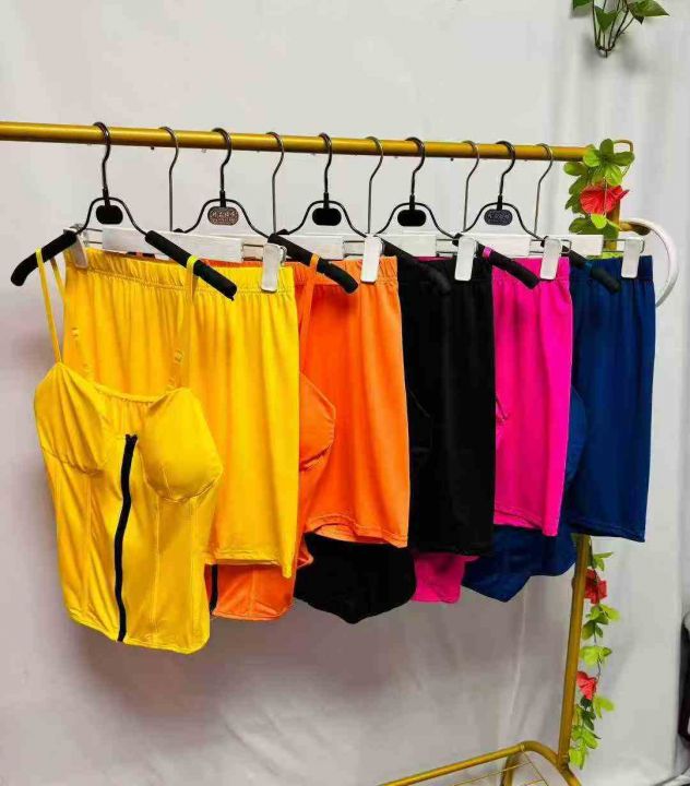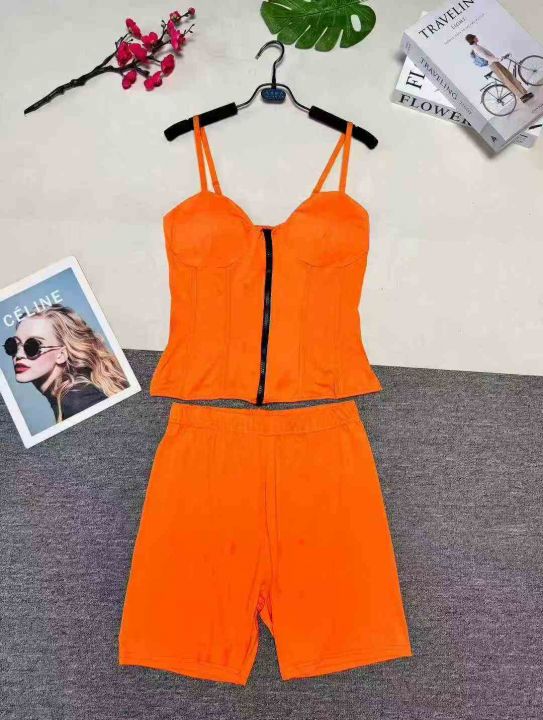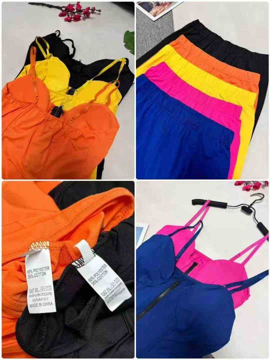 欧美性感抹胸吊带+短裤两件套 ,整款多色,数量260套左右,码数S-2XL,品质好,拉链式独立包装。