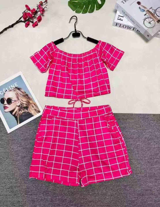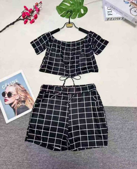 7.8清:欧美辣妹一字肩短袖上衣+短裤两件套 ,整款多...
