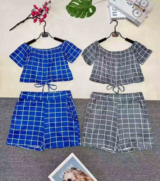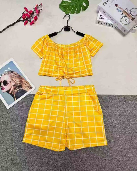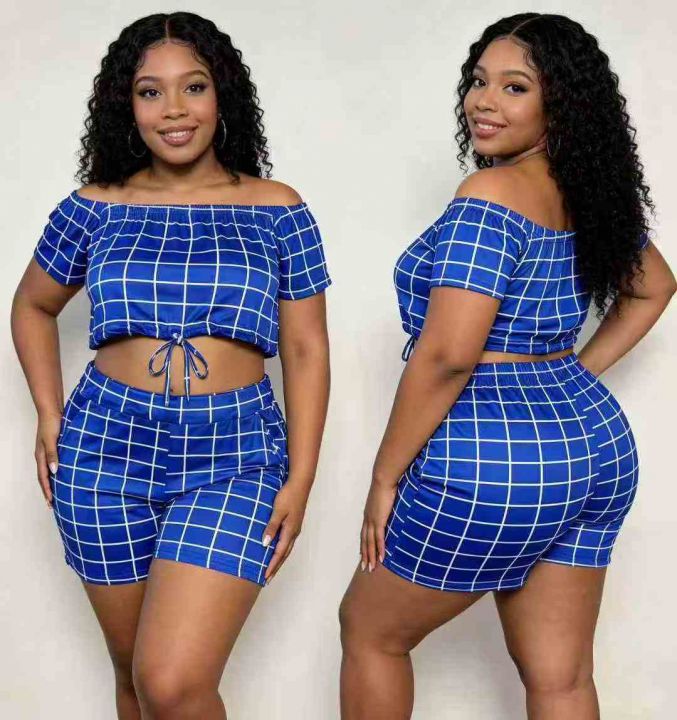 欧美辣妹一字肩短袖上衣+短裤两件套 ,整款多色,数量:160套,码数:S-2XL,品质好,拉链式独立包装z