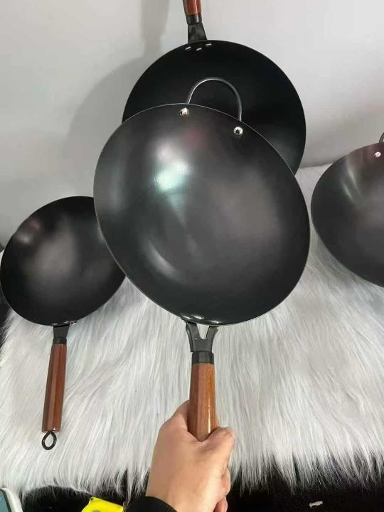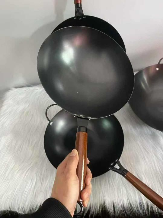 圆底炒锅,无涂层炒锅不生锈物理不粘燃气灶氮化铁锅,30-32-34-36公分。原件
