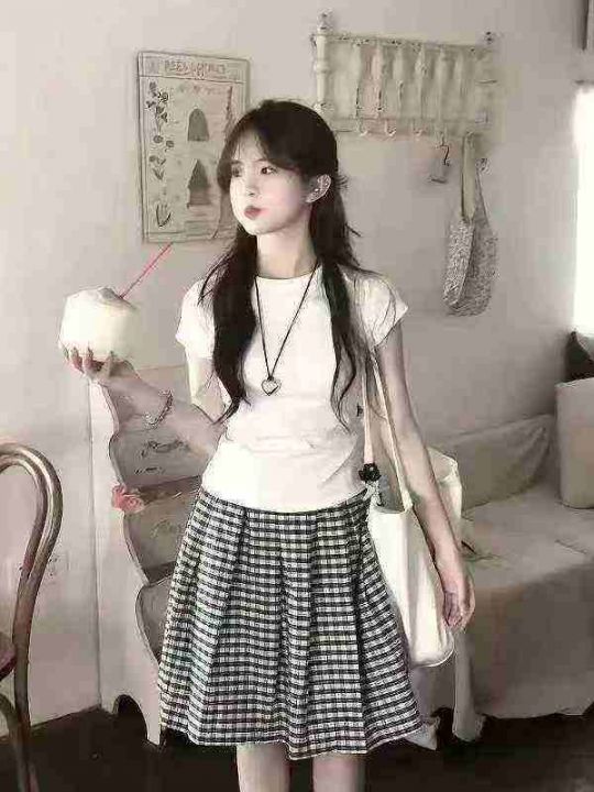 美式复古格子麻棉休闲松弛百褶时尚半身伞裙·单款两个色s-L独立包装260条全...