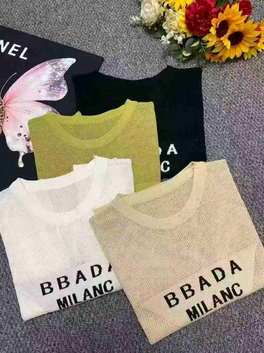 夏季新款韩系镂空设计款提花针织短袖T桖,独立包装,...