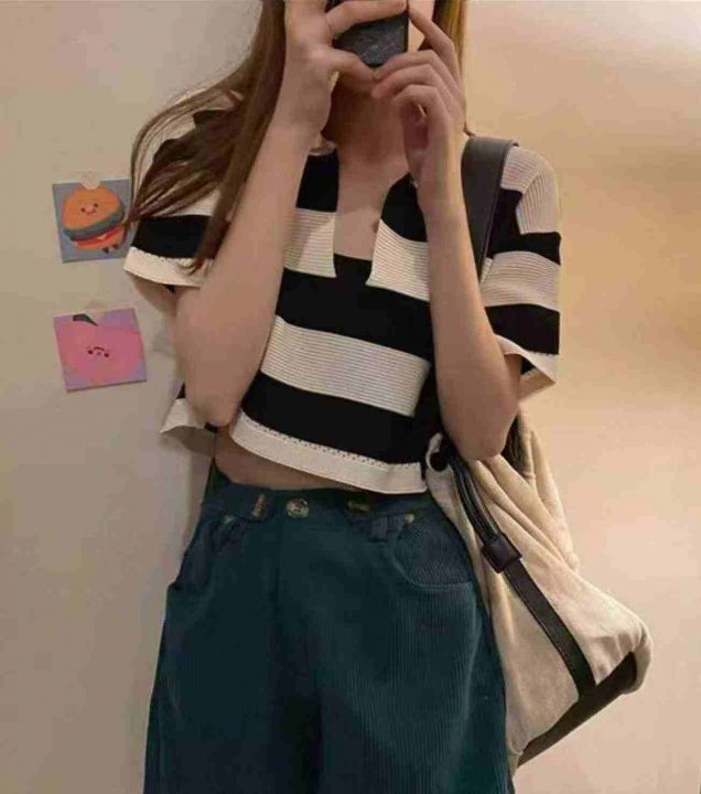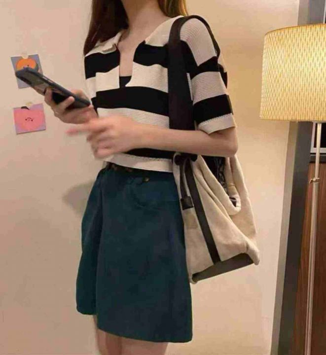 夏季新款撞色条纹宽松百搭Polo领针织短袖T+弹力修身显瘦黑色抹胸2件套,独立包装,均码面料柔软舒适弹力大,160套左右,全清5.9元超低价秒杀!