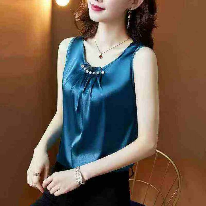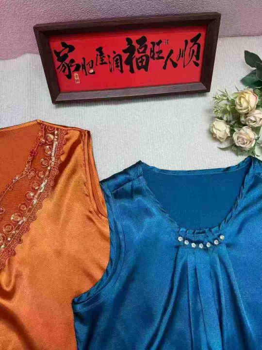 经典仿真丝绣花蕾丝拼接无袖背心.图片款式都单色1-4...