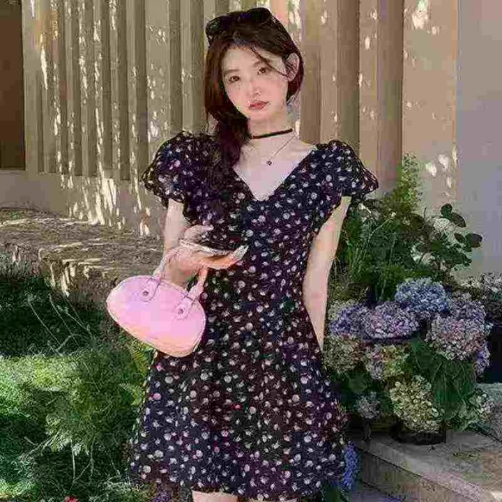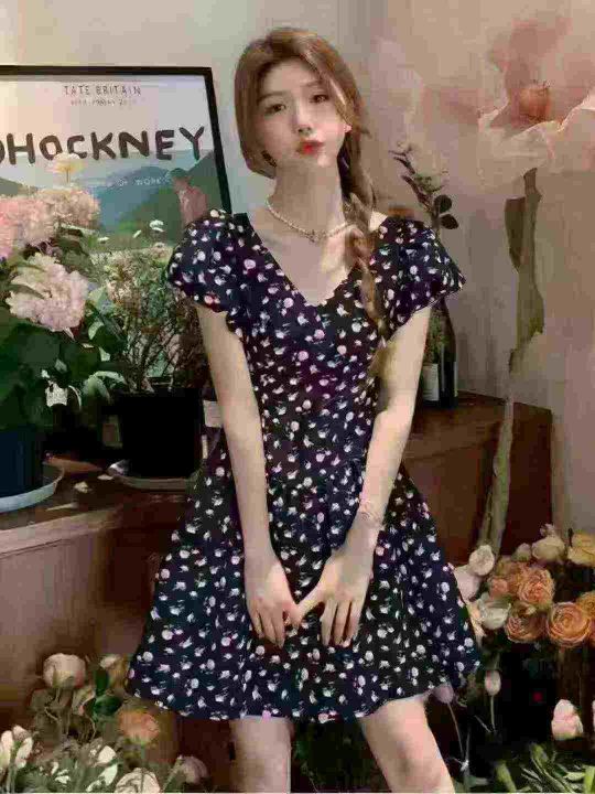 法式复古桔梗碎花连衣裙2025夏季新款蝴蝶结收腰显瘦a字裙,单款单色,2.3.4.5码,独立包装,货品干净,2630件,7.9清,分货加1