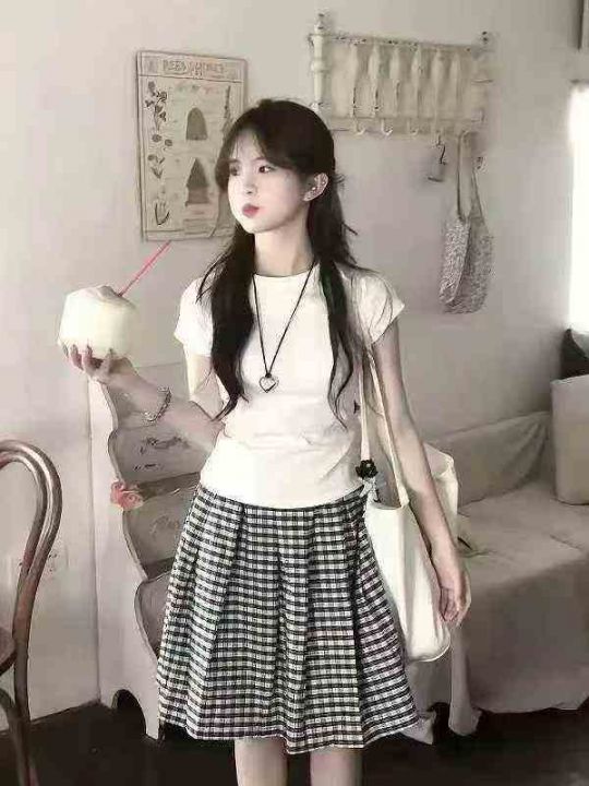 美式复古格子麻棉休闲松弛百褶时尚半身伞裙·单款两个色s-L独立包装260条全...
