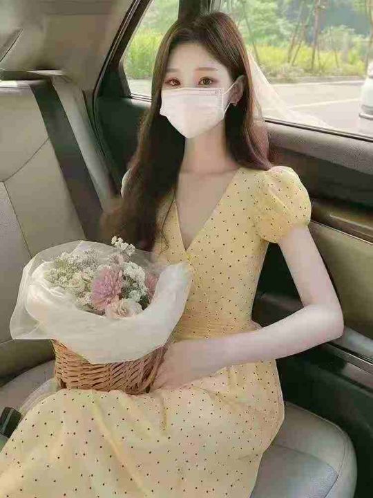 爆款甜美波点法式气质泡泡袖小仙女美爆连衣裙,整款两色,L裙长120厘米,有...