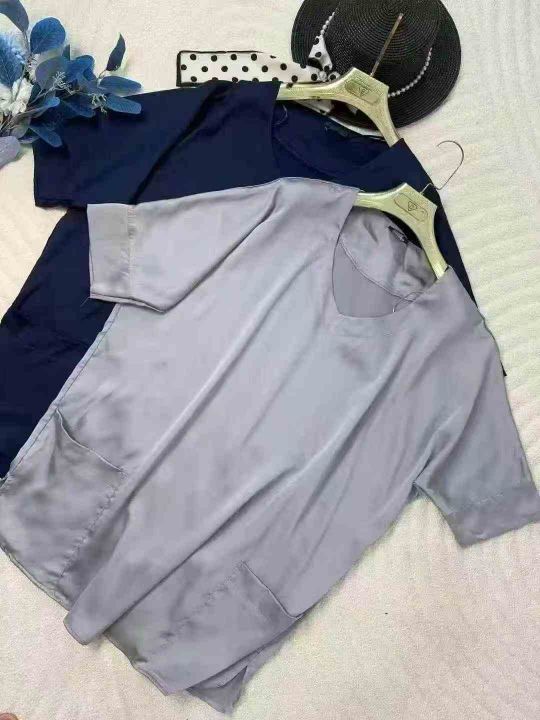 外贸加大加肥版缎面上衣双兜,两个颜色,尺码S~L,10件一包,面料柔软,有光泽,货品干净漂亮