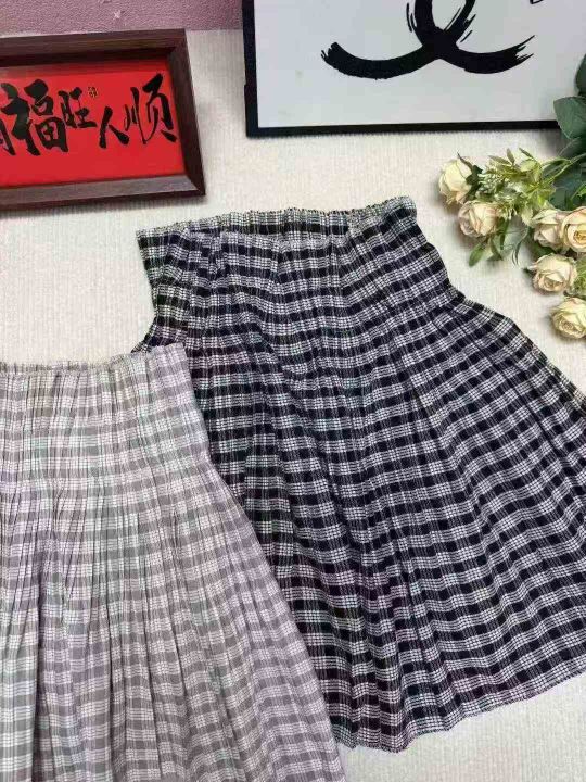 美式复古格子麻棉休闲松弛百褶时尚半身伞裙·单款两个色s-L独立包装260条全清4.8不分货
