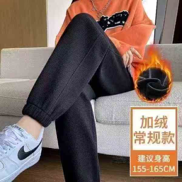 华夫格男女款冬季加绒加厚束脚运动裤宽松加绒休闲裤,整款3色,独立包装,...