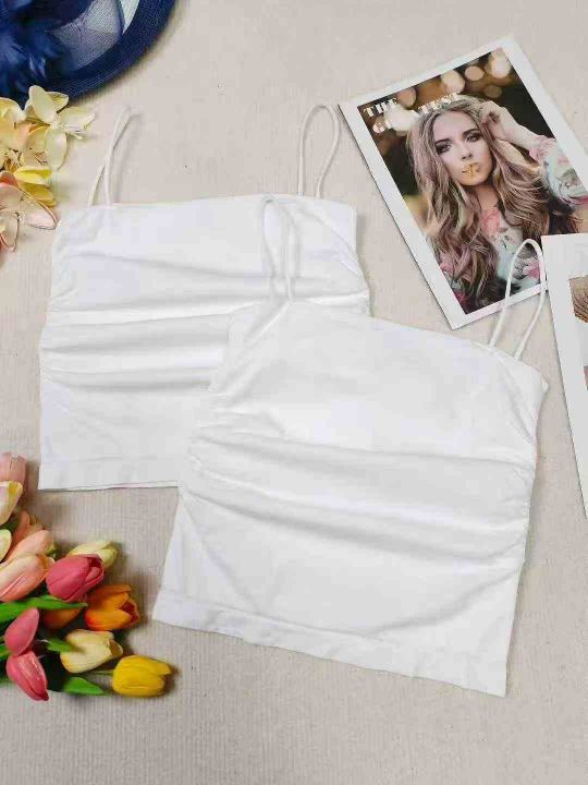 800件纯欲褶皱吊带背心女夏季带胸垫显瘦内搭打底外穿修身美背短款上衣 独立包装 5.8清 分货加一
