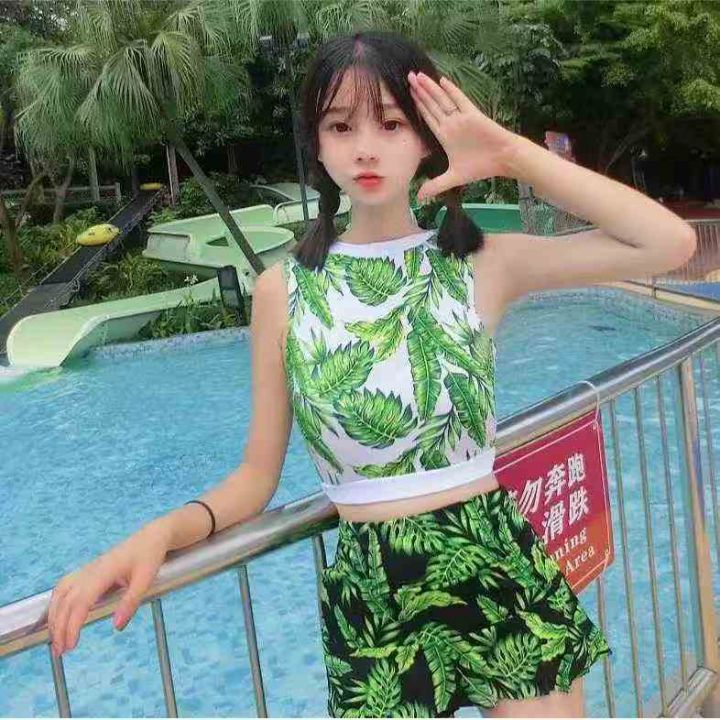 新款夏季分体裙式泳衣女显瘦遮肚高腰沙滩海边游泳装,...