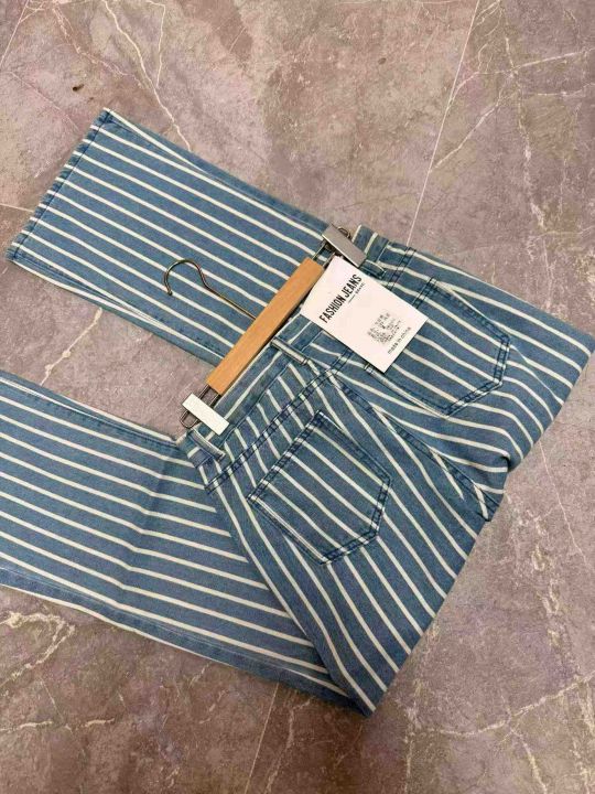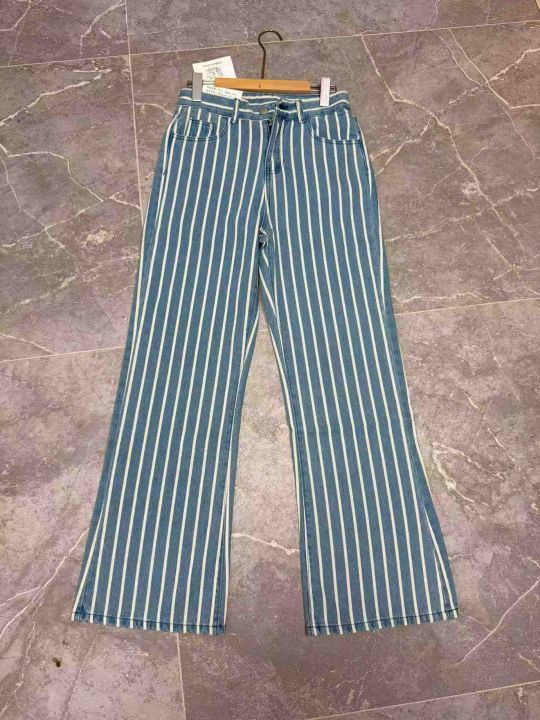 撞色条纹高腰阔腿牛仔裤女秋季宽松显瘦显高垂感直筒休闲长裤,独立包装,S -XL码、190件左右全清12.8