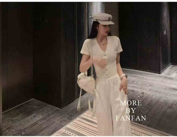 夏季新款网红小香风V领小众别致弹力修身显瘦短袖针织...