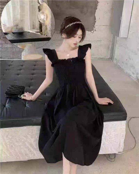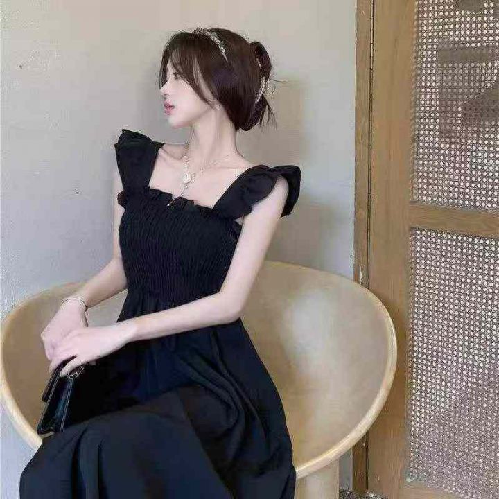 ① 法式复古方领木耳收腰显瘦吊带连衣长裙!独立包装...