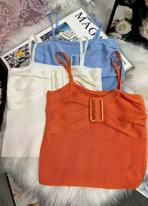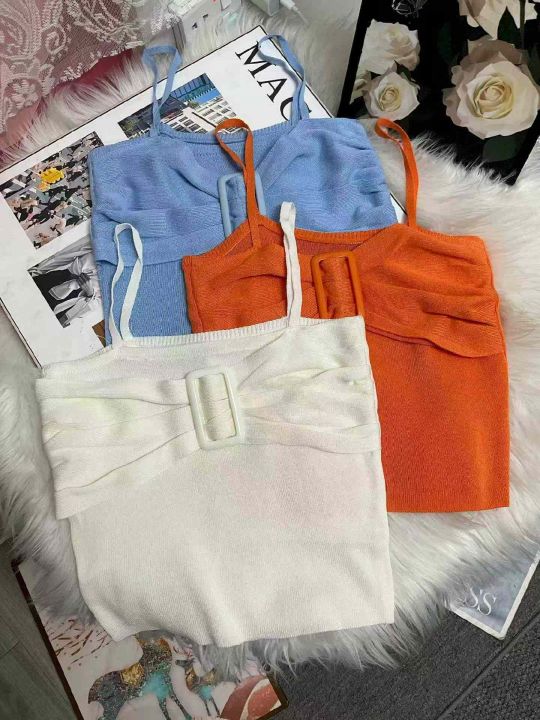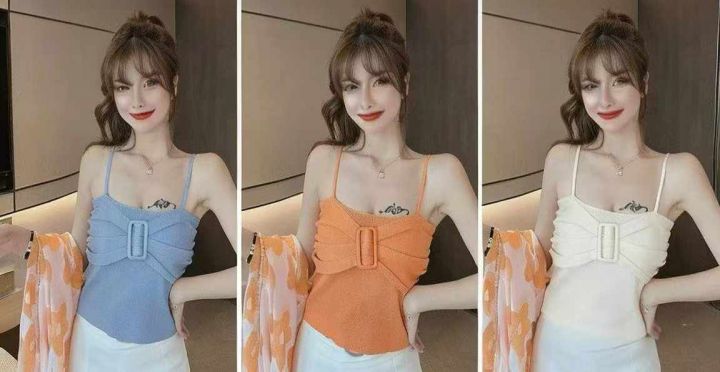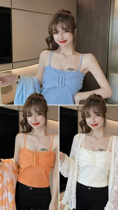 夏季新款网红辣妹性感小香风弹力修身显瘦设计款针织吊...