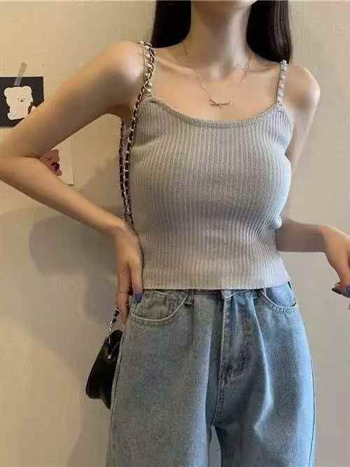 夏季新款小清新重工订珠针织吊带背心,独立包装,均码...