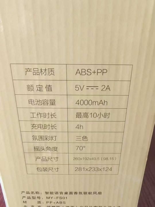 桌面风扇可放香薰驱蚊片➕内置4000mAh电池➕三挡左右摇头➕语音控制,箱装8台,总1600pcs。 货号:23491