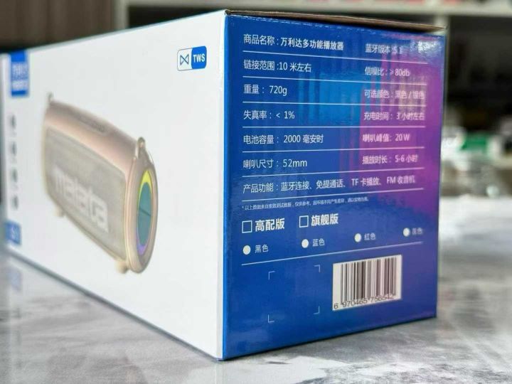 万利达品牌蓝牙音箱,2000毫安电池,双喇叭20W,2400 个。 货号:23491