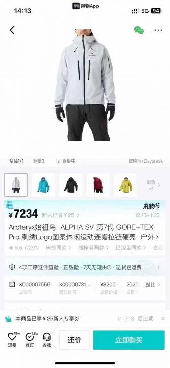 1500件Arcteryx始祖鸟 ALPHA SV 第7代 GORE-TEX Pro。 货号:32539