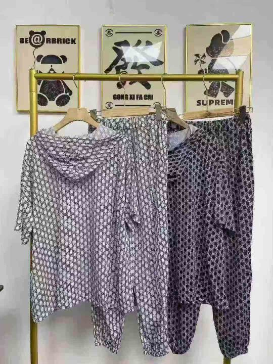 天猫在售款190件左右高品质夏季高端时尚潮牌满印连帽休闲套装,码数M-L,单款两色,质量好有弹力,独立包装