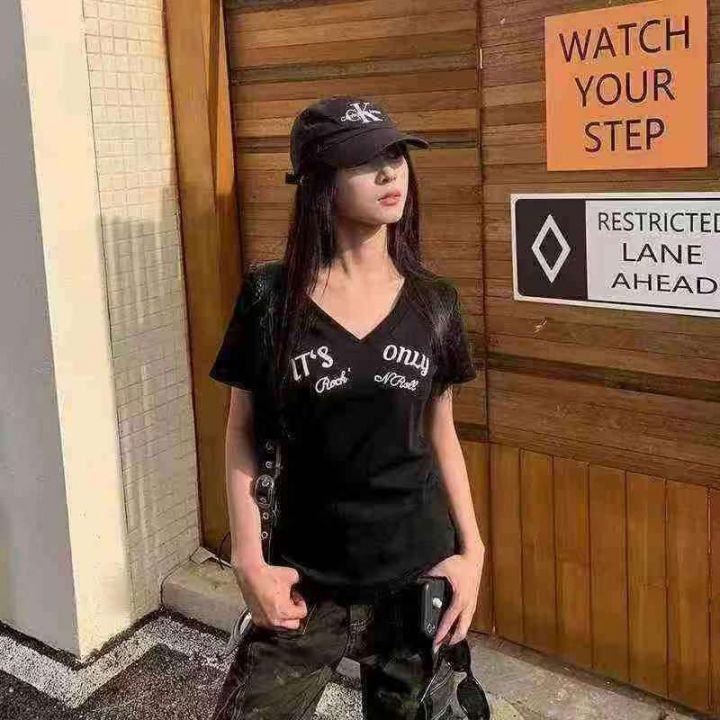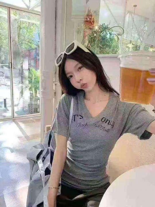 上新全清:6.8一件韩版V领设计感独特别致辣妹T恤,[爱...