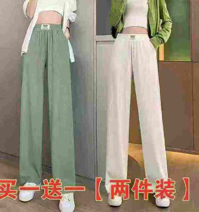 窄版冰丝裤子女夏季新款高腰垂感宽松显高显瘦休闲直筒拖地阔腿裤