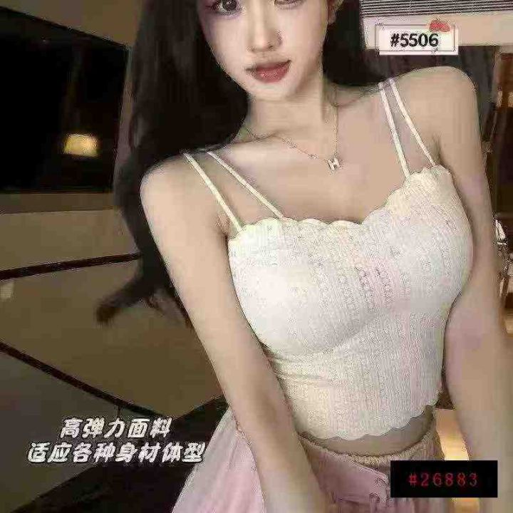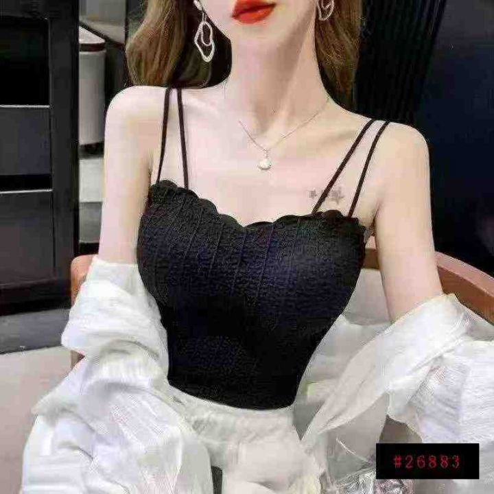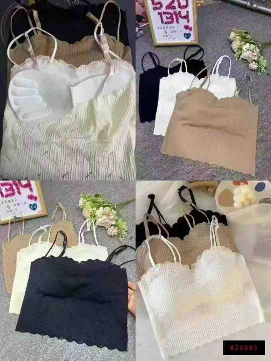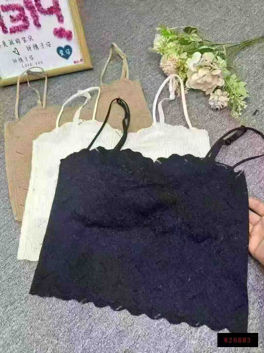 夏季美背内衣女内搭带胸垫小吊带背心外穿打底无袖短款抹胸薄,黑色多,2个花型,有弹力,均码大概80穿到140斤,2600件左右,独立拉链原包装,货品干净,5.8清,分货加1@_@