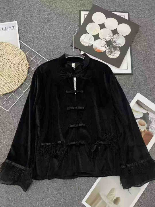 ☕️新中式国风盘扣丝绒上衣连衣裙 ,四个款都是黑色,数量80件左右 ,全清12.8元,高品质不加绒,S到XXL,独立包装[庆祝][庆祝][庆祝]小众设计款长袖上衣