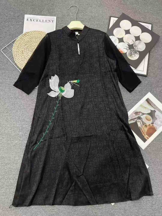 ☕️新中式国风盘扣丝绒上衣连衣裙 ,四个款都是黑色...
