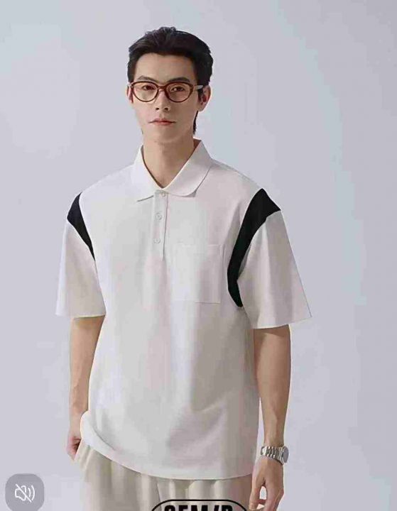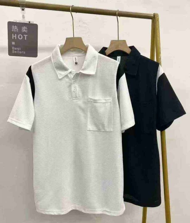 华夫格短袖Polo衫230件8.9,撞色拼接,有口袋,后领包...
