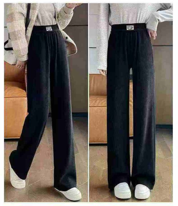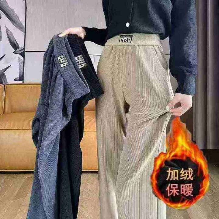 冬季加绒加厚窄版阔腿裤直筒裤暖高腰休闲直筒裤女,独...