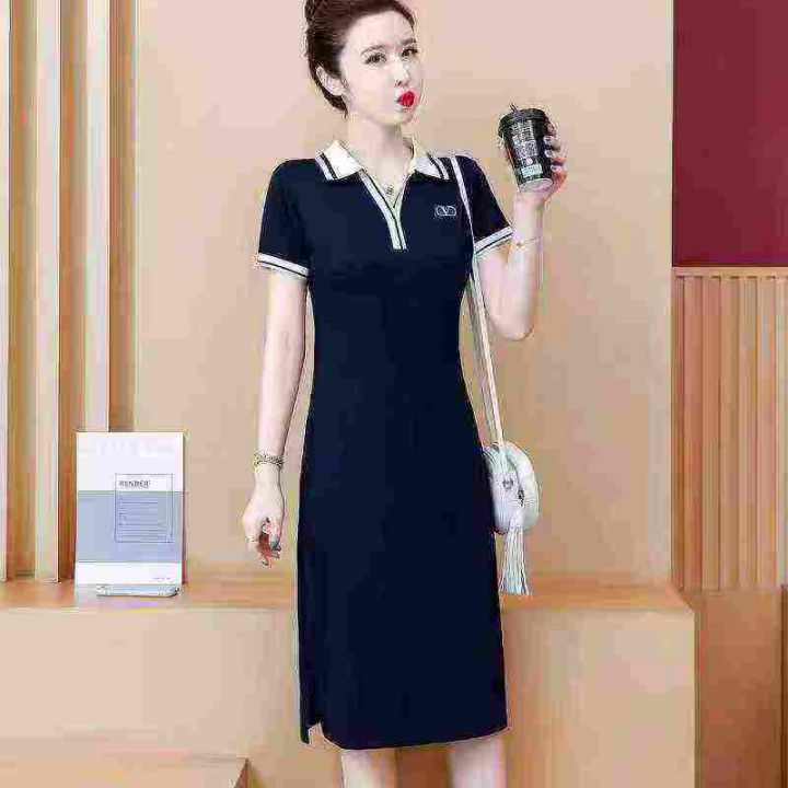 全清7.9polo连衣裙女夏过膝长款直筒T恤裙休闲宽松遮肚子运动连衣裙,码数2-...