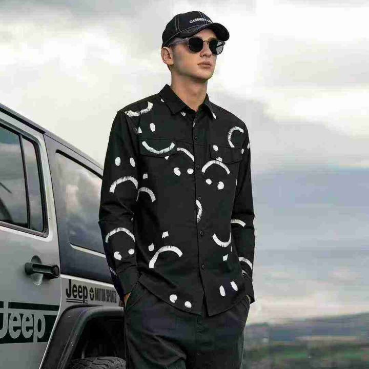 全清7.5秋季新款笑脸印花休闲长袖衬衫男士时尚百搭宽松方领休闲衬衣 381件 ...