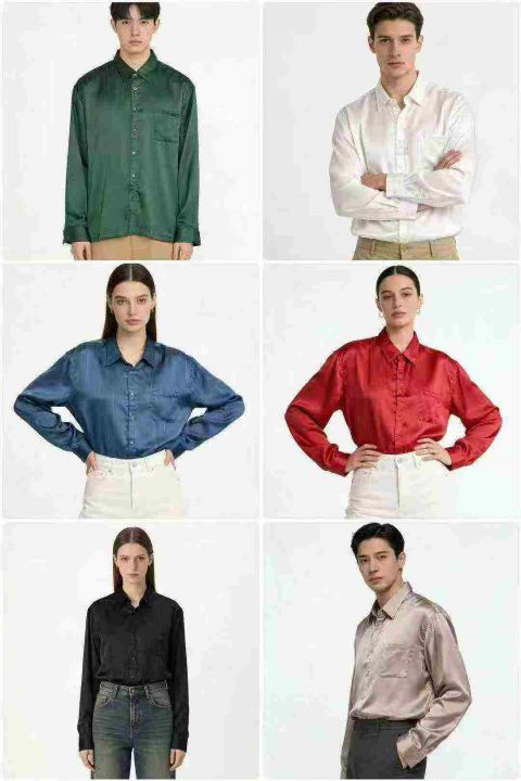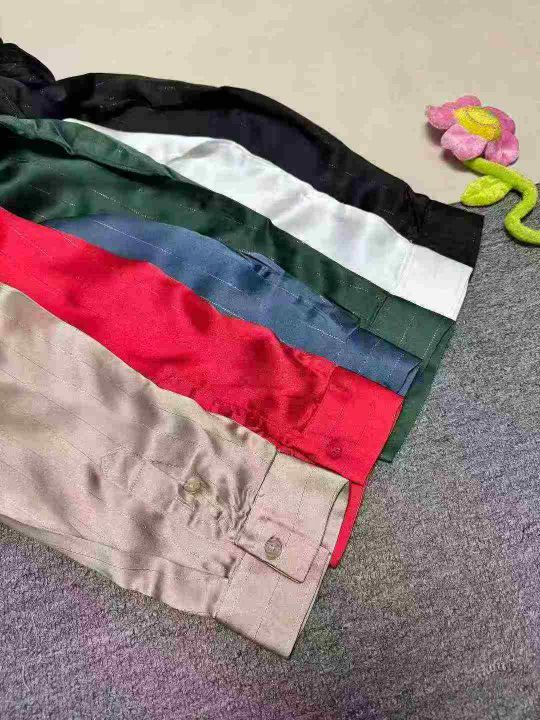 外贸男女条纹仿真丝缎面长袖职业气质衬衣,整款多色,...
