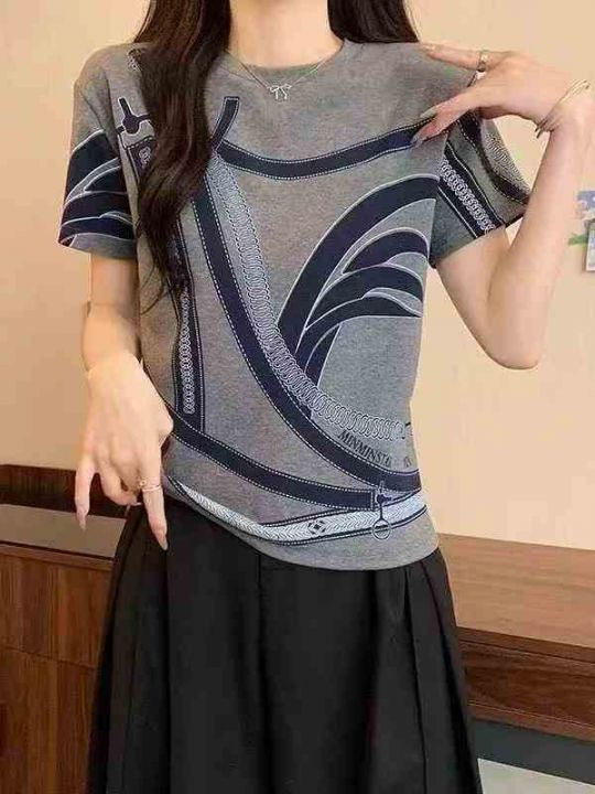 清7.8分货➕1高品质夏季新款圆领灰色纯棉短袖T恤时尚高级印花独特设计感小...