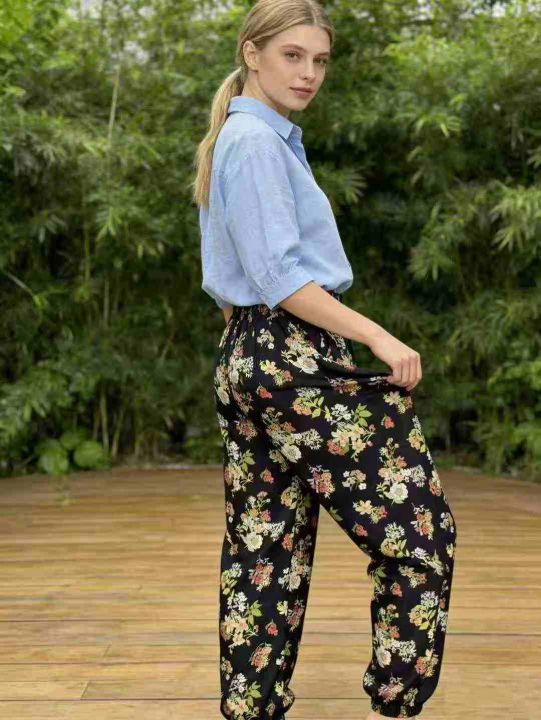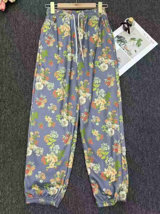 圣诞年秋冬新款加绒加厚洋气束脚哈伦裤网红欧洲站复古印花女卫裤,独立包装,291件,全清6.9