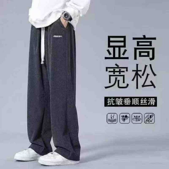 清8.8灯芯绒裤子男春秋季潮牌直筒卫裤男生垂感阔腿裤宽松休闲运动长裤,码...