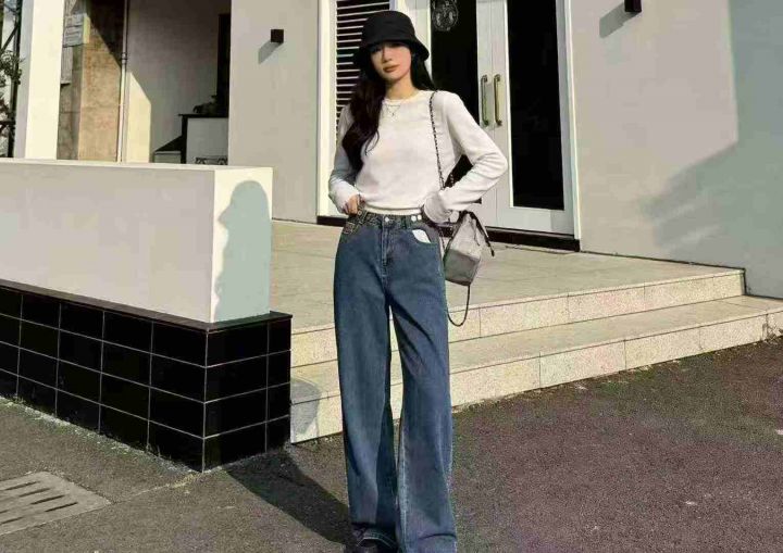 夏季薄款复古高街阔腿牛仔裤女ins垂感高腰,单款单色,独立包装带吊牌,码...