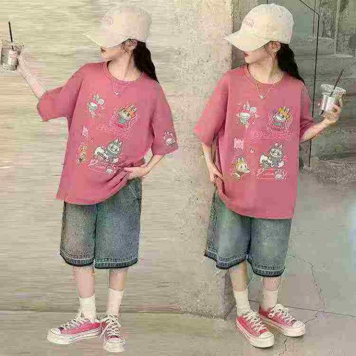 纯棉t恤夏季新款男女童洋气外穿卡通百搭,有包装,7y一17y,7个码每个码一件,980件,全清4.8块,分货加