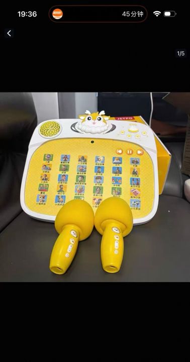 到货JETPO M5逻辑思维K歌一体机,全新未拆封!自带麦克风双麦克两个,原产品只带一个,可连手机蓝牙。内置丰富早教内容:儿歌、成语、童话故事、古诗、弟子规等。自然护眼设计,语音伴学,宝宝早教启蒙好帮手,数量600PCS