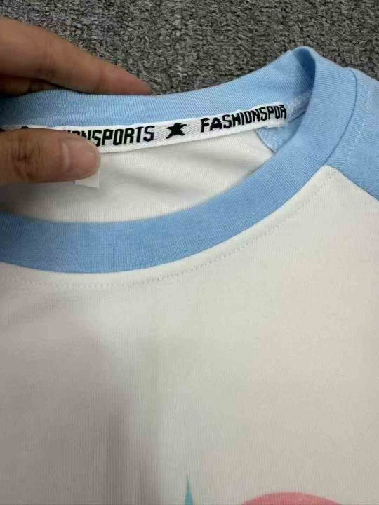 清7.5分货➕1甜酷蝴蝶拼色插肩短袖t恤女,带弹力,数...