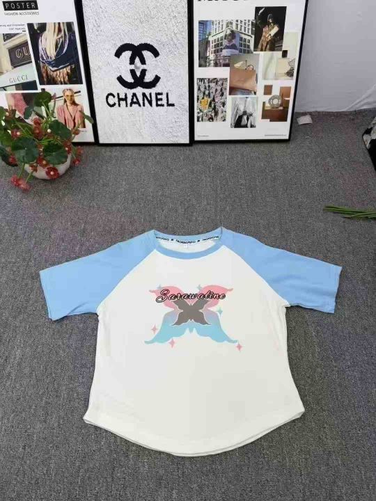 甜酷蝴蝶拼色插肩短袖t恤女,带弹力,数量450件,码数S-XL,独立包装,质量很好,货品干净,