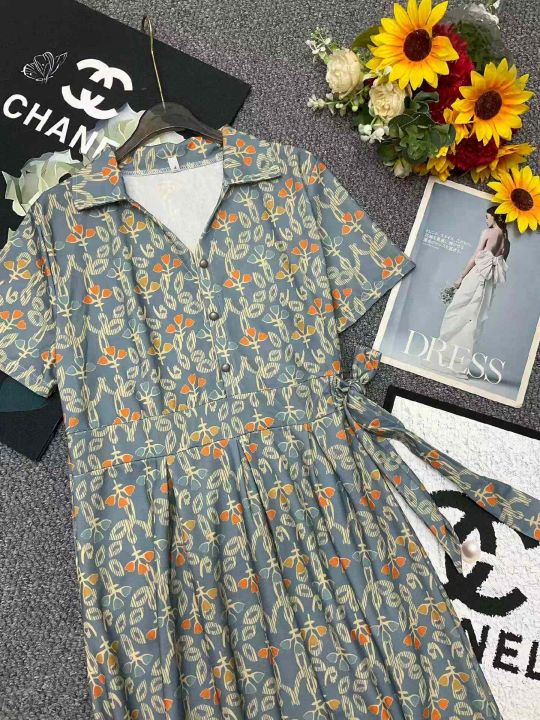 夏季新款中长款宽松百搭微胖MM休闲纯棉POLO领连衣裙,独立包装,码数M-3XL...