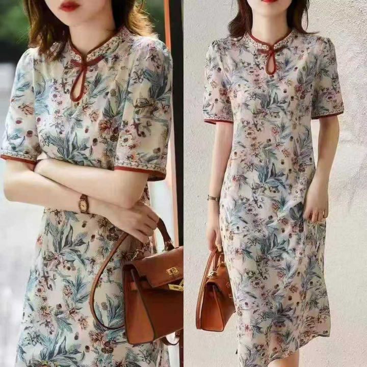 夏季新款网红爆款短袖气质减龄碎花妈妈衬衫连衣裙,独立包装,工厂新货码数...