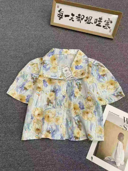 复古小众油画衬衫255件7.8,面料柔软,油画印花,码数...