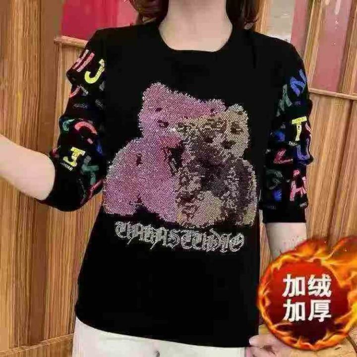 全清价8.8加绒加厚烫钻小熊洋气卫衣休闲卫衣,独立包装,宝宝绒,码数L-XXL...